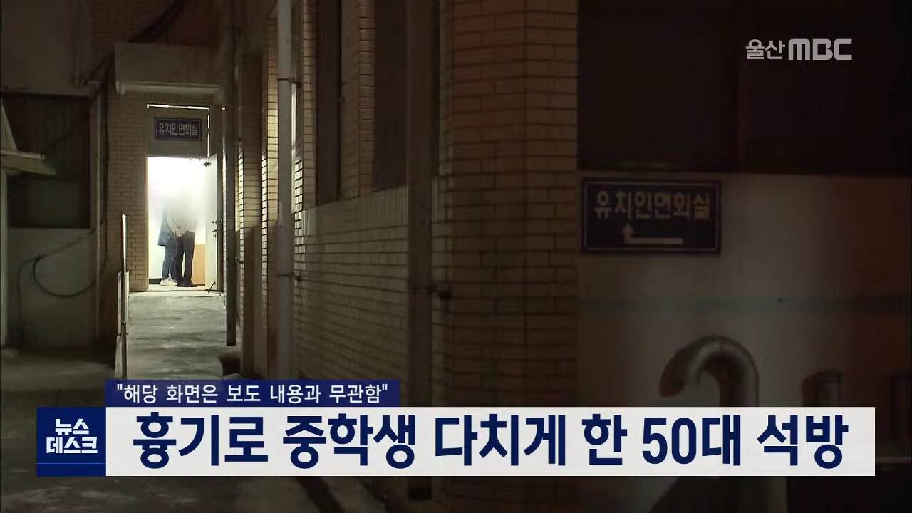 울산의 한 50대 남성이 흉기로 중학생을 다치게 했지만 석방된 사실이 뒤늦게 알려져 논란이 되고 있습니다. 지난 14일 밤 9시 30분쯤 중구 반구동의 한 아파트를 지나던 중학생 홍군는 술에 취한 50대 A씨가 휘두른 흉기에 머리와 복부를 다쳤습니다. A씨는 집에서 사용할 용도로 흉기를 구입했고 흉기에는 커버가 씌어 있...