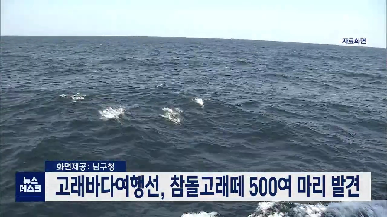 지난 5월부터 정기운항에 들어간 고래바다여행선이 올해 두번째로 참돌고래떼를 발견했습니다. 남구도시관리공단은 오늘(7/18) 오후 3시 40분쯤 승객 92명을 태운 고래바다여행선이 장생포 남동쪽 16km 해상에서 참돌고래떼 500여 마리를 목격했다고 밝혔습니다. 승선객들은 먹이를 쫓아 힘차게 유영하는 참돌고래떼를 15분...
