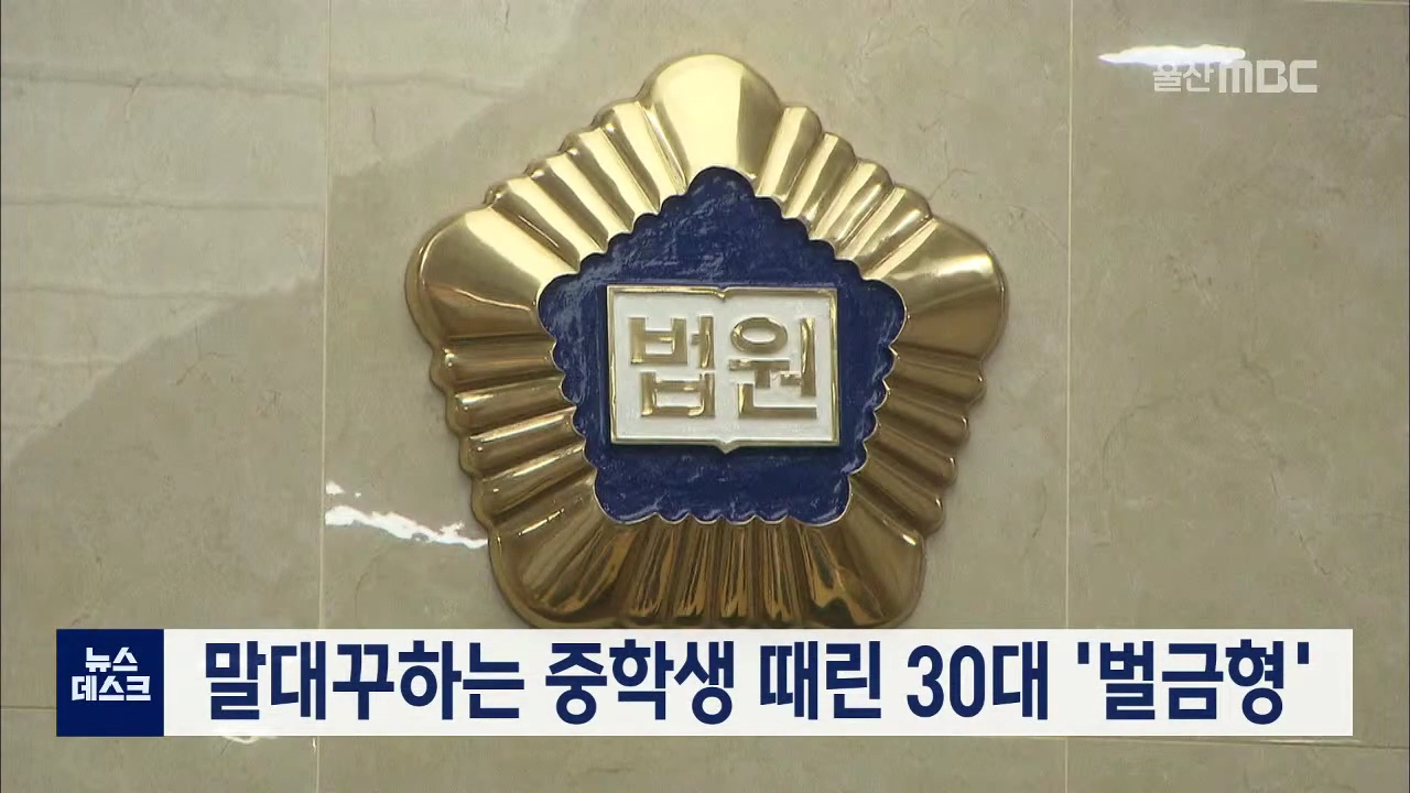 울산지법 형사5단독 이상엽 판사는 말대꾸를 하는 중학생을 때린 혐의로 기소된 37살 A씨에게 벌금 400만 원을 선고했습니다. A씨는 지난해 11월 새벽 시간에 편의점에서 컵라면을 먹고 있는 중학생에게 "꼬멩이가 이 시간까지 뭘 하냐"고 말을 걸자, "꼬멩이 취급을 하지 말라"는 대답에 화가 나 학생을 때려 전치 8주의 ...