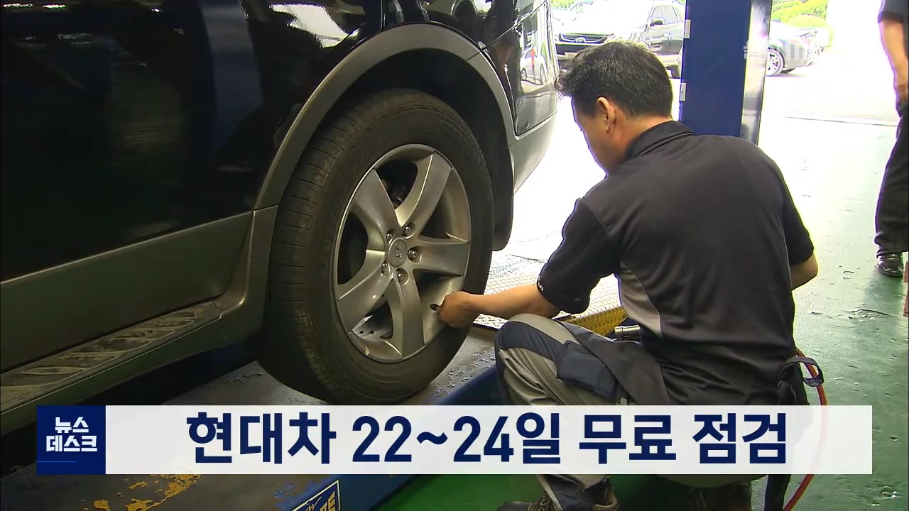 현대자동차는 여름휴가철을 맞아 차량을 무료로 점검해 줍니다. 현대자동차는 22일부터 24일까지 전국 직영서비스센터 22곳과 서비스협력업체 블루핸즈 1369곳에서 하계 특별 무상점검서비스를 실시합니다. 점검 대상은 엔진 구동상태와 오일 누유 여부, 타이어 공기압,브레이크패드 마모 정도 등입니다.