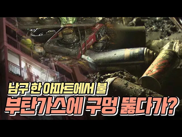 ◀ANC▶오늘(7/16) 새벽 남구 달동의 한 아파트에서 불이 났습니다.현장감식 결과 현장에서 구멍 뚫린 부탄가스캔이 화재 원인으로 추정되는데, 소방당국은 흔히 쓰는 부탄가스지만 각별한 주의가 필요하다고 당부했습니다.정인곤 기자. ◀END▶ ◀VCR▶아파트 입구가 모두 검게 타버렸고 문 앞에는깨진 유리가 가득합...