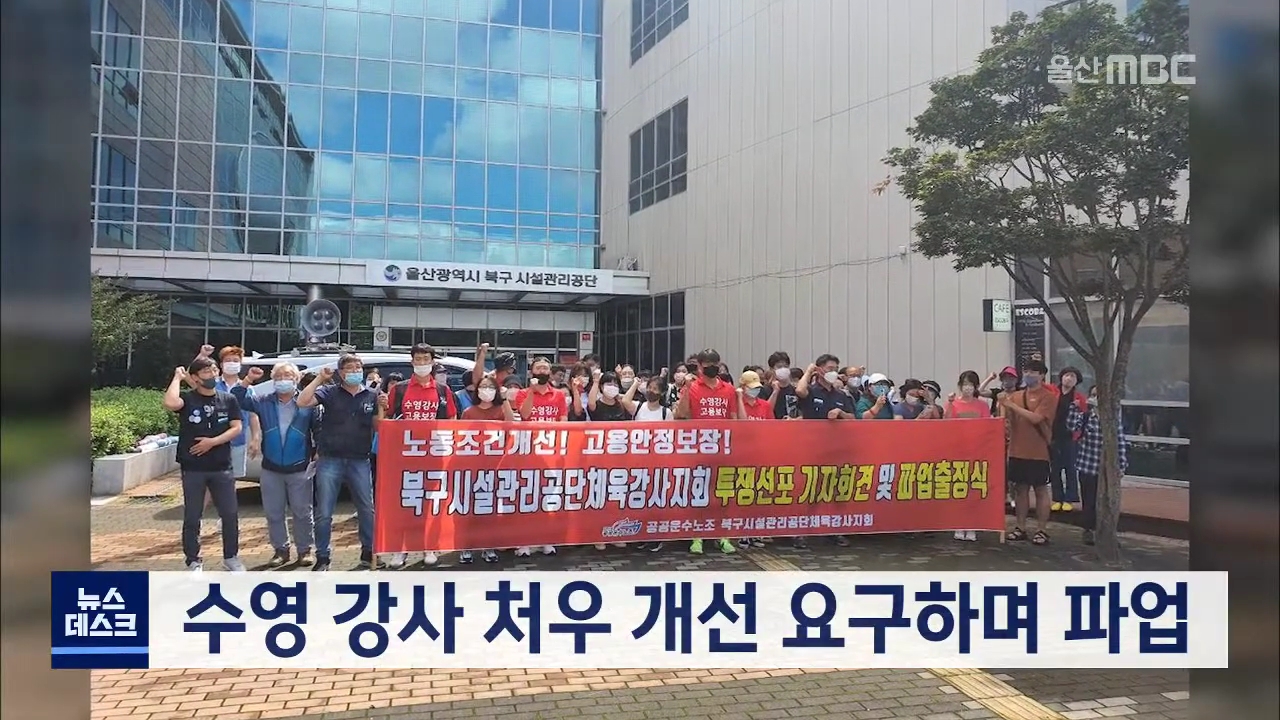 북구시설관리공단 수영 강사들이 오늘(7/16) 북구오토밸리센터 앞에서 기자회견을 열고 고용보장과 처우개선을 요구하며 파업에 들어갔습니다. 이들은 북구시설관리공단이 일방적인 조건의 프리랜서 계약을 강요해 왔다며 언제 해고가 될지 모르는 고용불안 속에 일하고 있다고 말했습니다. 또한 재계약 과정에서 기존 1년 ...