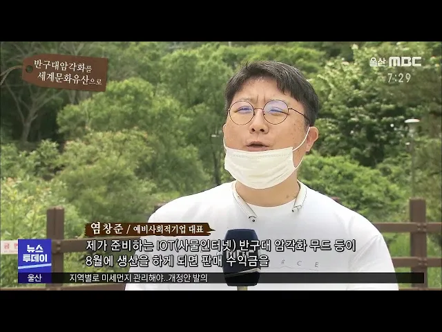 염창준 / 예비사회적기업 대표 제가 준비하는 IOT(사물인터넷) 반구대 암각화 무드 등이 8월에 생산을 하게 되면 판매 수익금을 이런 유네스코 등재를 위한 활동에 도움이 될만한 기부도 하고 그 제품 자체가 사라져서 안 보이는 그림들이 있어요. 그 그림들을 중점적으로 무드 등으로 볼 수 있도록 해가지고 사람들이 그것...
