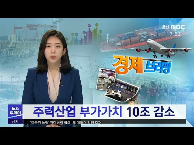 ◀ANC▶울산의 주력산업 부가가치가최근 8년동안 10조원이나 감소했습니다.수출액도 30%가 넘게 줄어주력 제조업의 경쟁력이크게 악화되고 있는 것으로분석됐습니다.경제브리핑 정인곤 기자 ◀VCR▶ ◀END▶자동차, 조선, 석유화학 등 울산지역 주력 제조업의 부가가치가 2011년 최고액을 기록한 이후 최근 8년동안 10...
