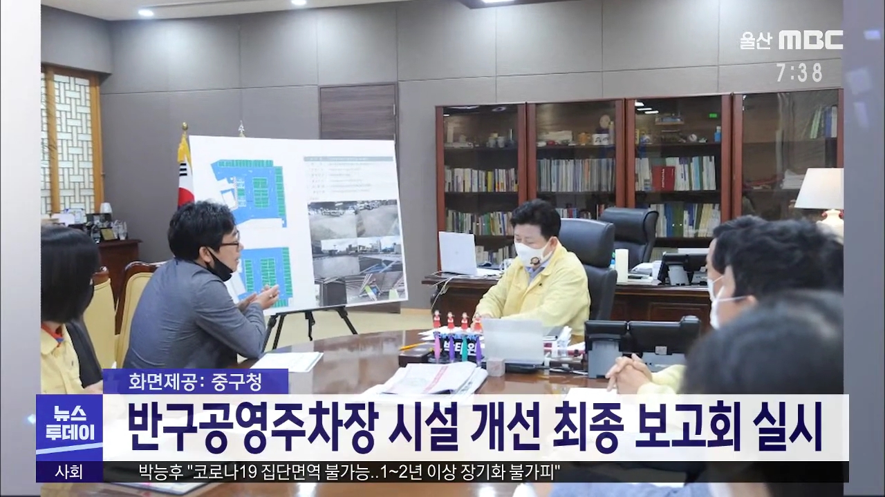 중구가 노후된 주차장 시설을 정비하는 '반구공영주차장 시설 개선' 사업 관련 최종 설계안 보고회를 실시했다고 밝혔습니다. 이번 시설 개선은 주차장 바닥과 방수 공사, 배수로 정비 등을 포함하며 총 예산 2억6천만 원을 투입해 오는 11월까지 진행할 예정입니다. //