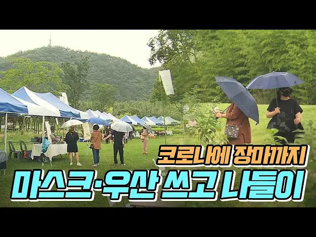 코로나19에 장맛비..마스크·우산 쓰고 나들이