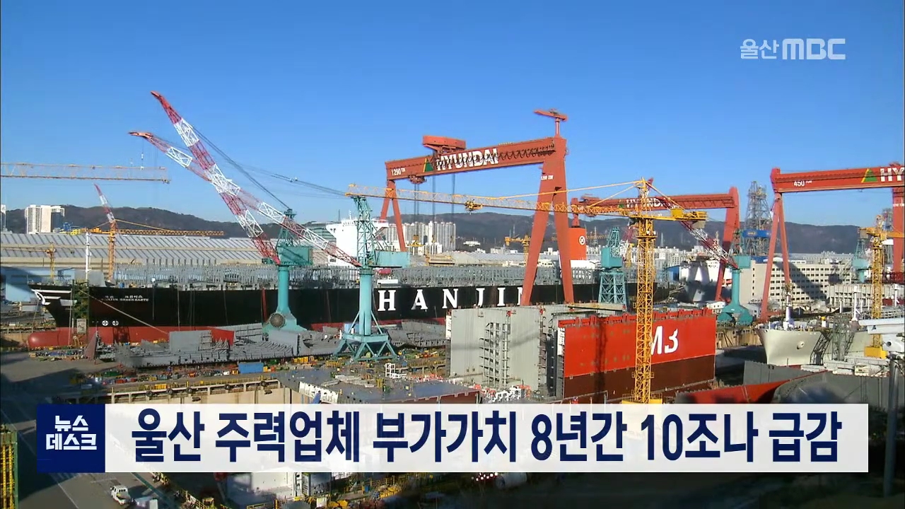 자동차, 조선, 석유화학 등 울산지역 주력 제조업의 부가가치가 2011년 최고액을 기록한 이후 최근 8년동안 10조원 가량 감소한 것으로 나타났습니다. 울산의 제조업 총 부가가치는 2011년 50조 9천억원으로 기록했지만 2018년에는 40조 9천억원으로 10조원이나 줄었습니다. 같은기간 울산지역 총 수출액도 2011년 1천 15억...
