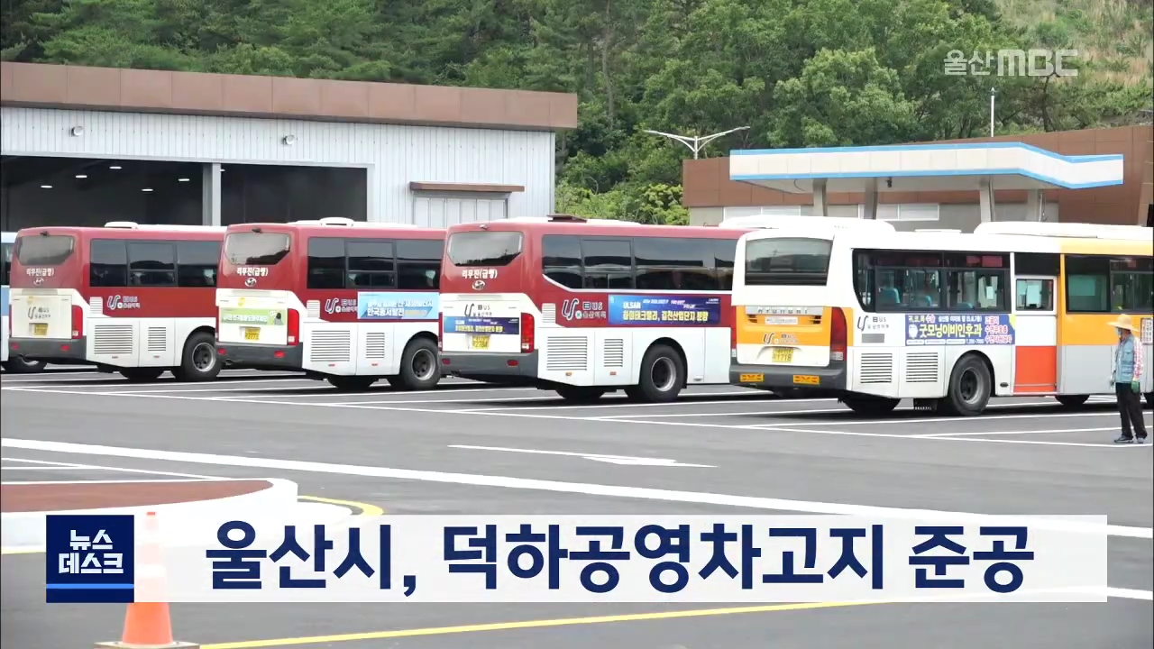 율리와 방어진, 농소에 이어 4번째로 덕하 시내버스 공영차고지가 준공됐습니다. 울주군 청량읍에 위치한 덕하공영차고지는 버스 134대가 주차할 수 있고 CNC 충전소와 버스 전용 수소 충전소를 갖추고 있습니다. 울산시는 앞으로 서부권인 언양에 5번째 공영차고지를 만들 계획입니다. //