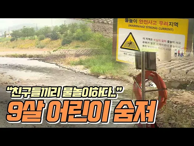 ◀ANC▶어제(7/6) 선바위 인근에서 친구들까리물놀이를 하던 9살 어린이가 물에 빠져 숨졌습니다.사고 당시 안전요원은 현장에 없었고수심은 표기된 것보다 휠씬 깊었습니다.정인곤 기자. ◀END▶ ◀VCR▶어제(7/5) 오후 5시 35분쯤 선바위교 밑 태화강에서 물놀이를 하던 9살 A 군이 사라졌다는 신고가 경찰에 접수됐...