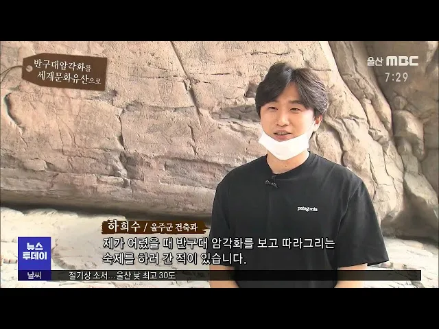 하희수 / 울주군 건축과제가 어렸을 때 반구대 암각화를 보고 따라그리는 숙제를 하러 간 적이 있습니다. 그때는 그림이 선명하게 잘 보여서 숙제를 해냈던 걸로 알고 있는데 작년에 한번 더 방문했더니 자연에 의해서 많이 훼손된 걸 보고 안타까움을 느꼈습니다. 하루라도 빨리 유네스코 세계문화유산에 등재돼서 잘 보존...