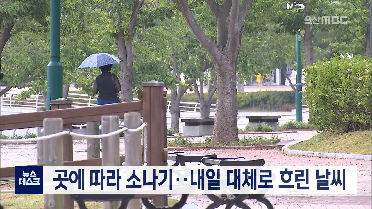 주말인 오늘(7/4) 울산지방은 흐린 날씨 속에 기압골의 영향으로 오늘 밤까지 소나기가 오는 곳이 있겠습니다. 내일도 대체로 흐리겠고 아침 최저 기온 18도로 시작해 낮에는 27도를 기록하며 평년과 비슷한 기온 분포가 예상됩니다. 울산기상대는 다음 주 화요일을 시작으로 한 주간 비가 내렸다 그치기를 반복하며 주 후...