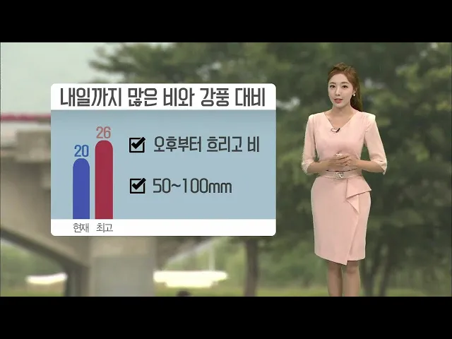 [오후부터 흐리고 비.. 울산 50~100mm]1) 오늘은 우산이 필요하겠습니다. 정체전선상에서 점차 발달하는 저기압의 영향으로 우리지역은 오늘 늦은 오후부터 내일 오전까지 50~100mm 가량의 많은 비가 내리겠습니다. 경남남해안과 지리산 부근에는 밤사이에 시간당 30mm 이상의 강한 비 와 최고 150mm 이상의 매우 많은 비가...