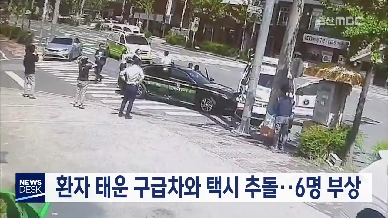 환자 태운 구급차와 택시 추돌..6명 부상
