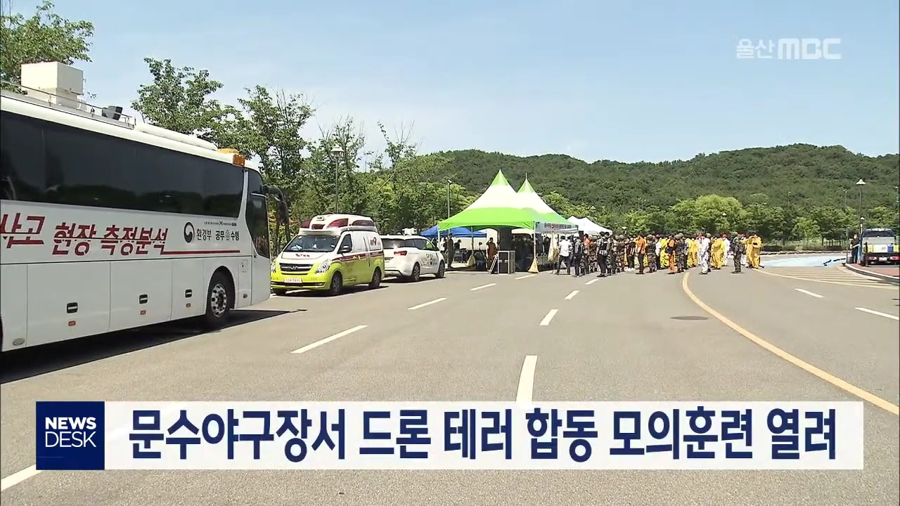 드론을 이용한 화학테러를 가정한 대테러 훈련이 오늘(6/26) 오후 울산 문수야구장에서 열렸습니다. 이번 훈련에는 울산경찰과 소방본부, 화학재난합동방재센터, 7765부대 등 8개 기관 108명이 참여해 드론 테러로 인한 유해화학물질 유출 대응방법을 훈련했습니다. 울산에서는 앞서 지난해 8월과 9월, 드론 비행 금지구역...