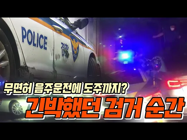 ◀ANC▶면허도 없이 술을 마시고 운전을 한 20대가 경찰에 붙잡혔습니다.30분 동안 추격전을 벌이며순찰차 2대를 들이받기도 했는데..경찰관이 승용차에 올라가 유리창을깨고 난 뒤에야 차에서 내렸습니다.이용주 기자. ◀END▶ ◀VCR▶울산 동구의 한 도로.늦은 밤, 승용차 한 대가정지신호도 무시한 채 빗길을 내달립...