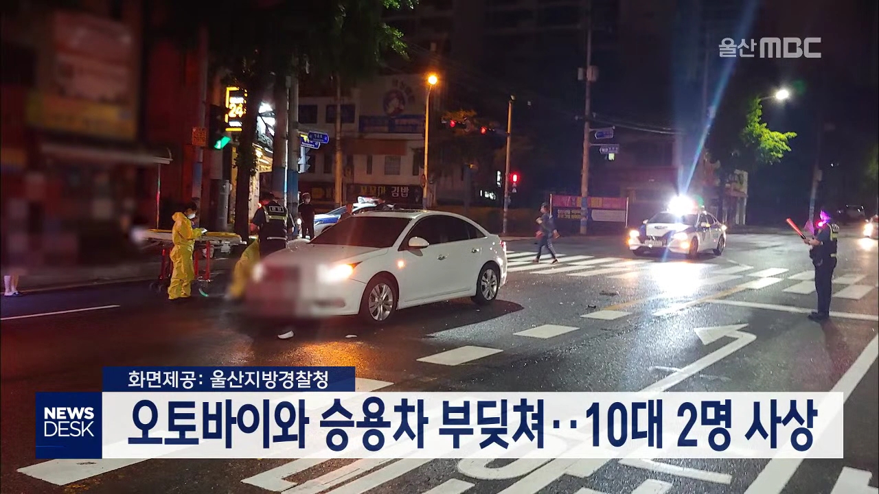 오토바이와 승용차 부딪쳐..10대 2명 사상