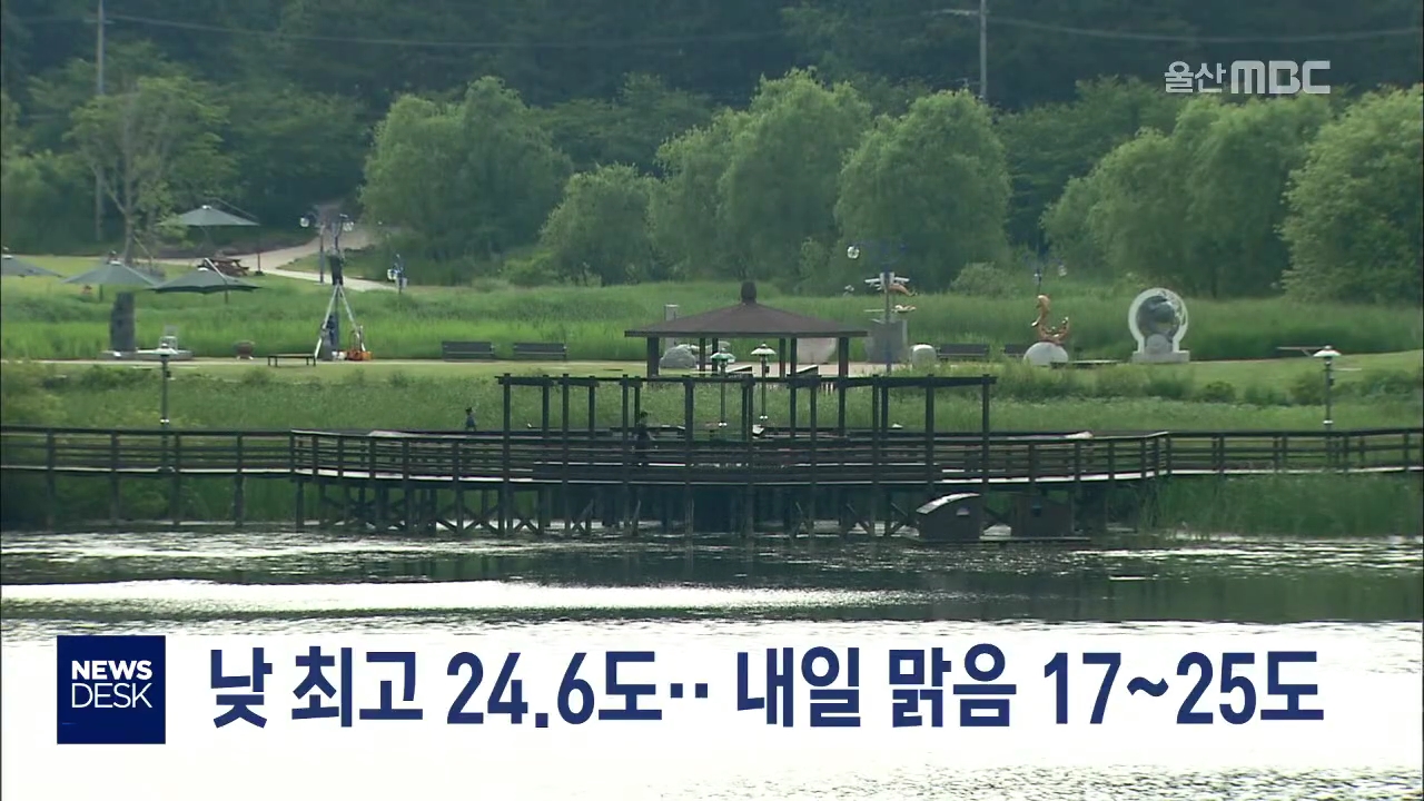 오늘(6/20) 울산지방은 대체로 구름 많은 가운데 낮 최고 기온이 24.6도를 기록했습니다. 내일은 맑은 날씨 속에 아침 최저 17도, 낮 최고 25도로 평년과 비슷한 기온 분포를 보이겠습니다. 울산기상대는 당분간 맑은 날씨가 이어지다가 다음주 수요일부터 비가 오겠다고 예보했습니다.