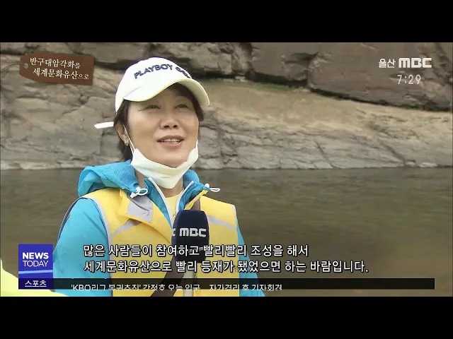 고수자 / 남구 수암동 반구대 암각화 환경 조성 사업에 또 캠페인에 참여하면서 실제로 보니까 그림들도 선명하지 못하고 저희가 얘기로만 듣던 부분들이 직접 느껴지고 흐릿하고 잘 안 보여요. 자꾸 침몰되는 것 같은 느낌도 들고 실제로 쓰레기를 주워보고 하니까 아직도 비닐이라든지 환경 조성 문제도 많이 오늘 이런 ...