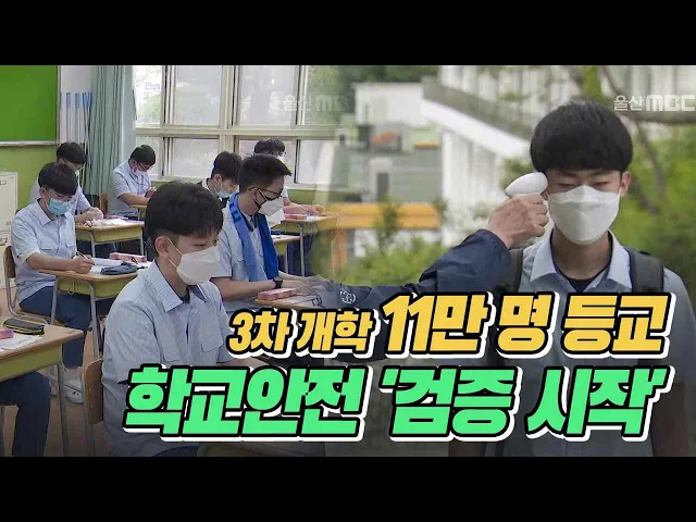 ◀ANC▶오늘(6/3) 3차 개학을 맞아울산에서는 11만 명의 학생들이 등교했습니다.고등학교는 1·2·3학년이 전부 등교했는데다행히 코로나 의심환자가 없어 정상적으로 수업했습니다.최지호 기자. ◀END▶ ◀VCR▶학생들이 1명씩 띄엄띄엄 간격을 두고 걸으며언덕길을 오릅니다.학년별로 10분씩 시간차를 두고 등교를 하고...