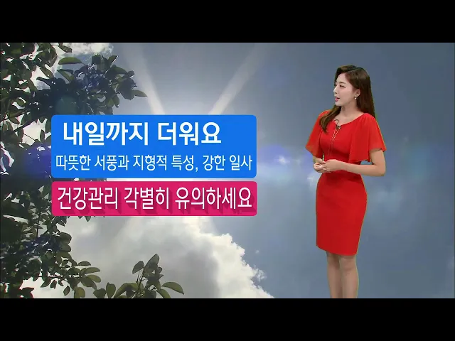 [울산 낮 최고기온 32도.. 올 들어 최고 기온 기록]1) 오늘 매우 덥겠습니다. 현재 대구와 경북, 경남 창녕에는 오늘 오전 11시를 기해 폭염주의보가 발표되겠는데요. 일부 내륙을 중심으로도 낮 기온 33도 이상 오르면서 매우 덥겠습니다. 울산은 오늘 낮 최고기온 32도까지 오르면서 올 들어 최고 기온을 기록하겠습니다....