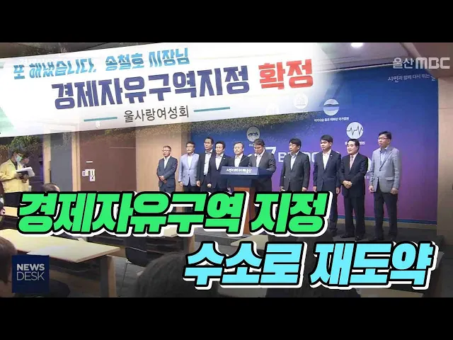 ◀ANC▶울산이 경제자유구역으로 공식 지정됐습니다. 울산에서 야심차게 추진 중인 수소 산업이 국가 산업으로 인정을 받은 것으로, 이른바 차세대 경제자유구역에 대한 정부 차원의 전폭적인 지원이 기대됩니다. 유영재 기자 ◀END▶ ◀VCR▶울산시청 광장에 많은 공무원들이 모였습니다. 울산이 경제자유구역 지정됐...