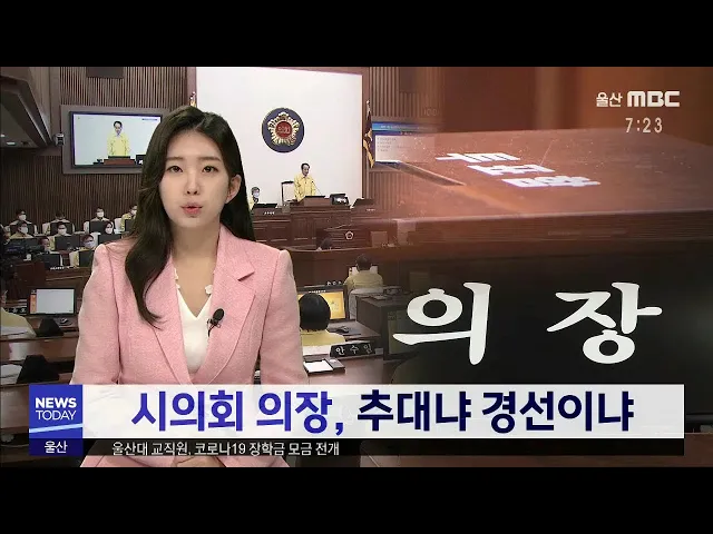 ◀ANC▶울산시의회 후반기 의장단 구성을 놓고 치열한 물밑경쟁이 한창입니다.경선이냐 합의추대냐를 놓고 미묘한 입장차를 보이고 있는데 다음주에 열리는 더불어민주당 의원총회에서 가닥이 잡힐 것으로 보입니다. 최영 기자. ◀VCR▶ ◀END▶하반기 울산시의회 의장 후보로 거론되는인물은 모두 5명. 김성록. 박병석...