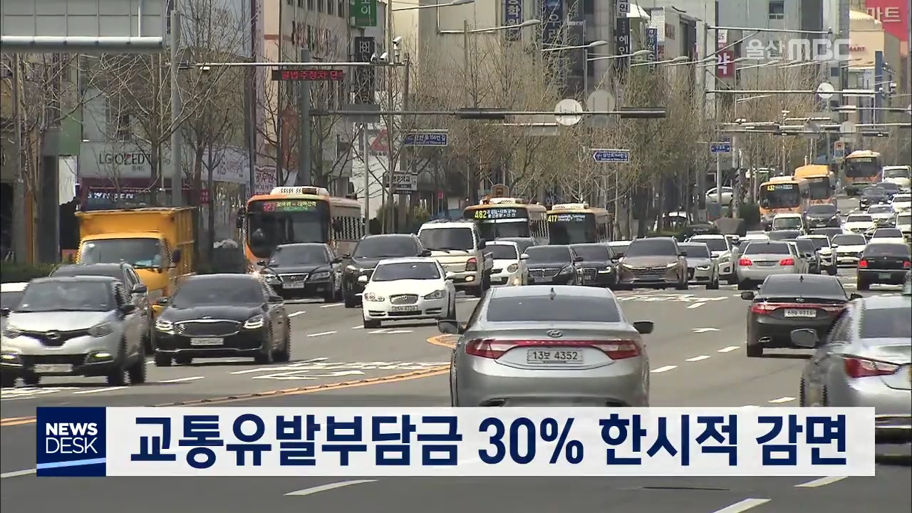 울산시는 코로나19로 경제 활동이 위축돼 민생경제 전반이 어려움을 겪는 점을 고려해 교통유발부담금을 한시적으로 30% 감면하기로 했습니다. 이번 결정으로 자영업자와 소상공인, 유통업 등이 내는 교통유발부담금이 올해는 27억원 정도 줄 전망입니다. 울산시는 지난해 4천 284건에 83억원에 이르는 교통유발부담금을 부...