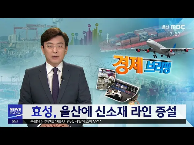 ◀ANC▶효성이 울산에 신소재 생산라인을 증설합니다.현대자동차 노사가 고용안정 자문위원회를구성했습니다.경제브리핑 정인곤 기잡니다. ◀VCR▶ ◀END▶효성은 613억원을 투자해 울산공장의 아라미드 생산라인을 증설하기로 하고 오늘(5/20) 울산시와 첨단소재 신규투자 관련 업무협약을 체결합니다.효성은 통신과 ...
