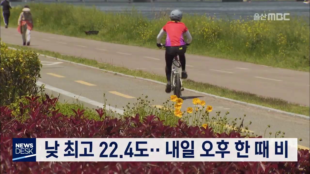 휴일인 오늘(5/17) 울산지방은 대체로 맑은 가운데 낮 최고 기온은 22.4도를 기록했습니다. 내일(5/18)은 오전부터 차차 흐려져 오후 한 때 5~20mm의 비가 내리겠으며 아침 최저 16도에서 낮 최고 21도의 기온분포가 예상됩니다. 기상대는 당분간 낮 기온이 20도 안팎에 머무르는 평년과 비슷한 봄 날씨가 이어질 것으로 내...