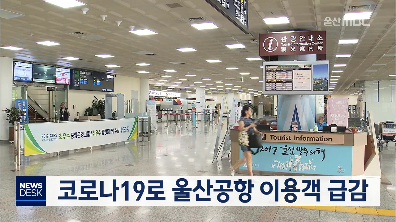코로나19로 항공편 운항이 줄면서 지난 3월과 4월 울산공항 이용객 수가 전년도의 10분의 1 수준까지 떨어진 것으로 나타났습니다. 한국공항공사가 고시한 항공통계에 따르면, 울산공항은 코로나19 유행 심각단계가 내려진 이후인 지난 3월 한 달 동안 공항 이용객이 8천 648명에 그쳐 전년 같은 기간의 11.9%에 머물렀습니...