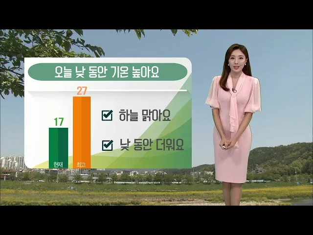 1) 휴일 동안 내린 비는 모두 그쳤습니다. 어제에 이어 오늘도 맑은 하늘 드러나겠고, 기온도 크게 오르겠습니다. 울산의 현재 기온 17도, 한낮 기온 27도로 평년보다 높은 기온을 보이겠는데요, 따뜻한 남서풍이 불고, 일사까지 더해지면서 낮 동안에는 덥겠습니다. 2) 오늘 아침까지는 경남 내륙을 중심으로 가시거리 1...