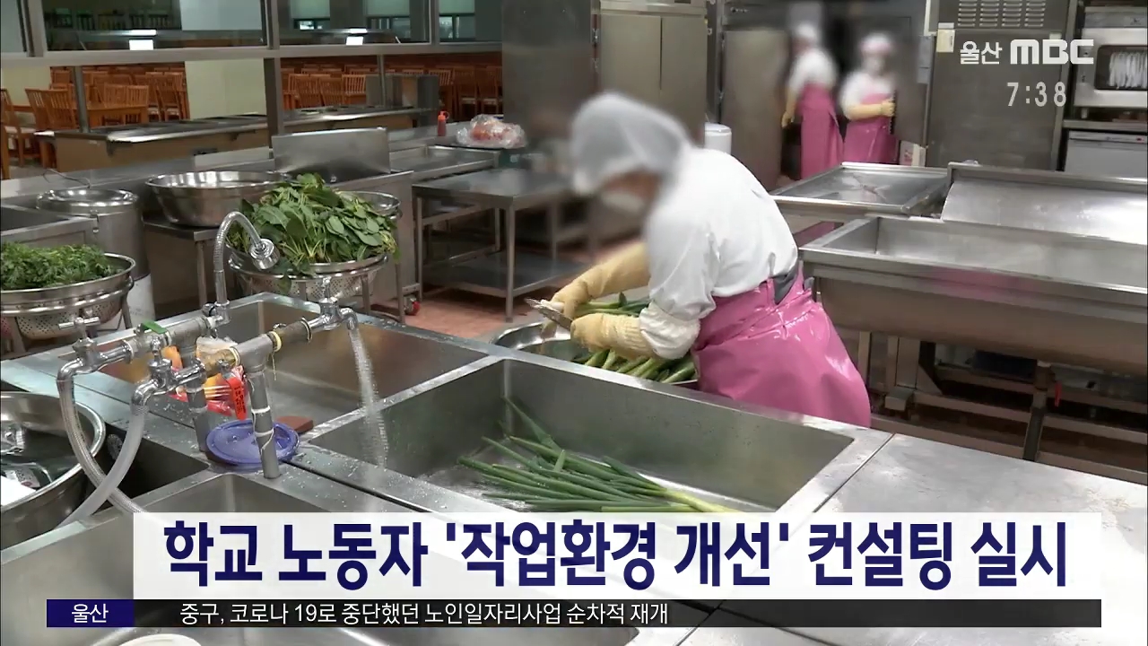 울산시교육청이 오는 11일부터 학교 현장 노동자의 근골격계 질환 예방을 위한 작업환경 개선 컨설팅을 실시합니다. 시교육청은 급식과 청소, 시설 관리 분야 노동자를 대상으로 맞춤형 상담을 통해 근골격계에 부담을 주는 요인을 파악한 뒤 보건관리지침에 반영할 계획이라고 밝혔습니다. //