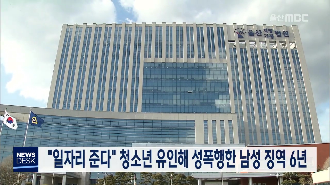 울산지방법원 제11형사부는 청소년성보호법 위반과 절도 등의 혐의로 기소된 28살 A씨에게 징역 6년과 벌금 30만 원을 선고했습니다. A씨는 지난해 10월 SNS에서 일자리를 구하는 18세 여성 청소년에게 전단지 배포 일자리를 주겠다고 속여 자신의 집으로 부른 뒤 성폭행한 혐의로 기소됐습니다. 또 지난해 5월에는 부동산...