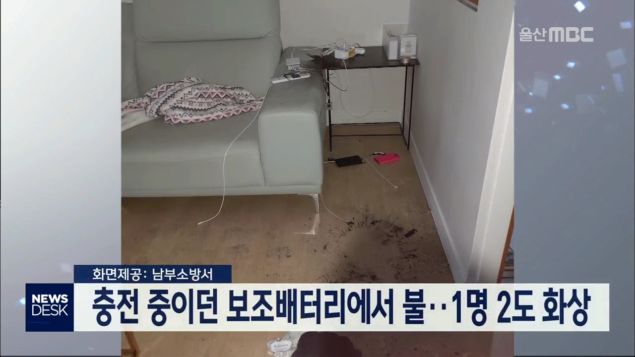 충전 중이던 보조배터리에서 불..1명 2도 화상