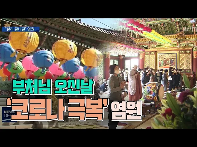 ◀ANC▶오늘(4/3) 부처님 오신 날을 맞아 울산의 사찰에서도 코로나19 극복을 위한 기도을 했습니다. 불교계는 하루라도 빨리 이 사태가 종식되기를 염원하며 사회적 거리두기에 적극 동참했는데요. 부처님 오신 날의 달라진 모습을 유영재 기자가 취재했습니다. ◀END▶ ◀VCR▶중구의 한 사찰. 불자들은 사찰 입구에...