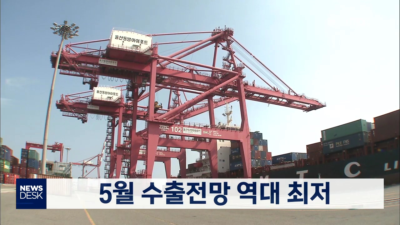 5월 수출전망이 조사를 시작한 1980년 이후 최저치를 기록했습니다. 한국경제연구원은 기업경기실사지수를 조사한 결과 5월 수출 전망치가 65로 역대 최저를 기록했다고 밝혔습니다. 수출 외에도 내수가 65.5, 투자가 70.6, 고용이 73.9 등 모두 기준선 아래로 조사됐습니다. 업종별로는 자동차가 30.8로 수출전망이 가장 ...