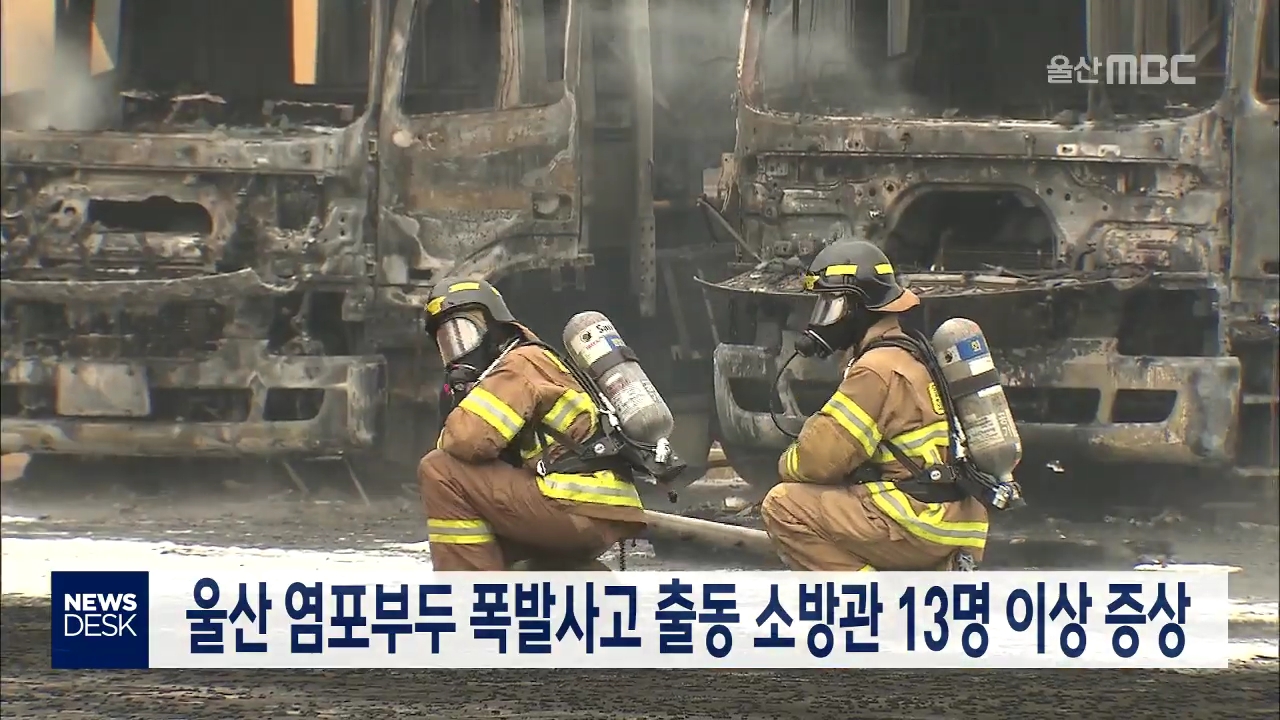 울산 염포부두 폭발 사고 당시 현장에 투입된 소방공무원 13명이 피부 발진과 기관지 통증 등 이상 증상을 겪은 것으로 나타났습니다. 울산시는 화재 진압에 참여한 소방관 240명에 대해 특별 검진을 시행한 결과 13명이 이상 증상을 보여 치료를 진행했다고 밝혔습니다. 울산시는 이외에 소방관 건강검진비, 시간외 근무수...