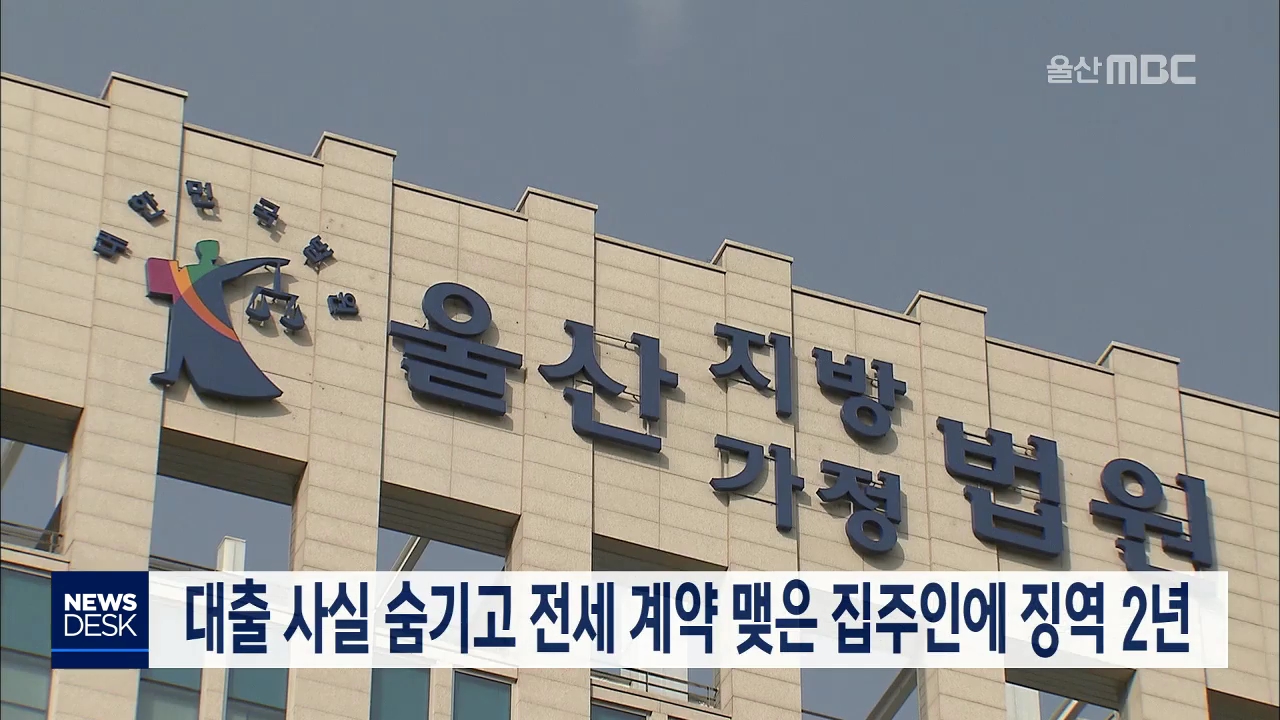 울산지방법원 전기흥 판사는 사기 혐의로 기소된 46살 A씨에게 징역 2년을 선고했습니다. A씨는 지난 2015년 자신의 아파트를 담보로 대출을 받아 아파트에 2억 5천 200만원의 근저당권이 설정돼 있었는데도, 세입자에게 이를 숨기고 전세계약을 체결해 보증금 2억 3천만 원을 받은 혐의로 기소됐습니다. 세입자는 A씨가 대...