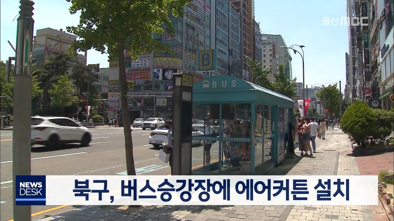 북구가 여름철 폭염을 대비해 버스승강장에 에어커튼을 설치합니다. 에어커튼은 버스승강장 기둥에 설치된 버튼을 누르면 시원한 바람이 나오는 시설로 체감온도를 낮추는 효과가 있습니다. 북구는 사업비 1억3천만 원을 들여 다음달 말까지 주요 버스 승강장 63곳에 에어커튼을 설치할 계획입니다.//