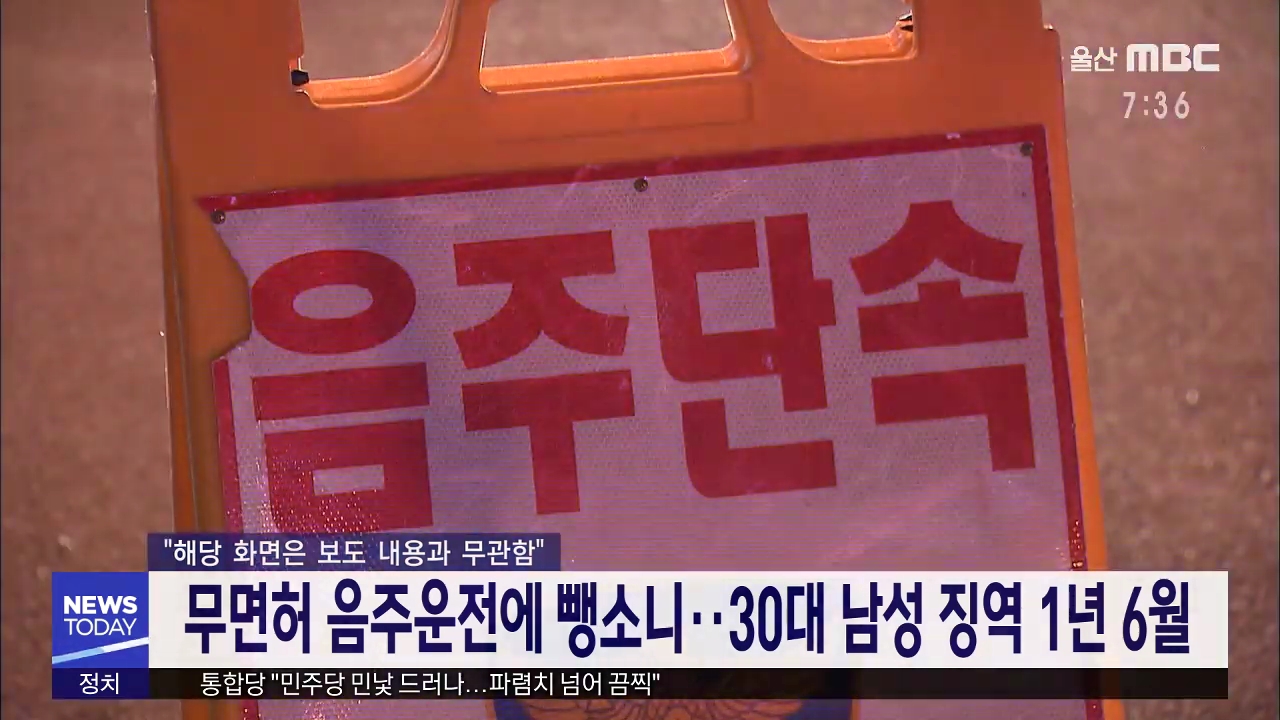 무면허 음주운전에 뺑소니.. 30대 남성 징역 1년 6월