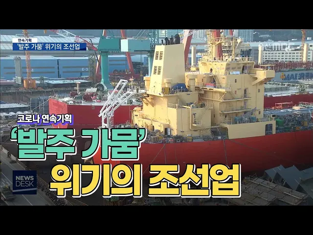 ◀ANC▶코로나19가 울산 경제에 미치는 여파를 짚어보는 연속기획 순서입니다오늘은 코로나발 글로벌 수주 절벽 끝에서 있는 조선업계의 속사정을 짚어봅니다.이용주 기자. ◀END▶ ◀VCR▶ 코로나19 장기화와 국제유가 급락으로전 세계 선박 발주가 얼어붙었습니다.투명cg) 영국 조선해운시황 분석기관클락슨리서치에 ...