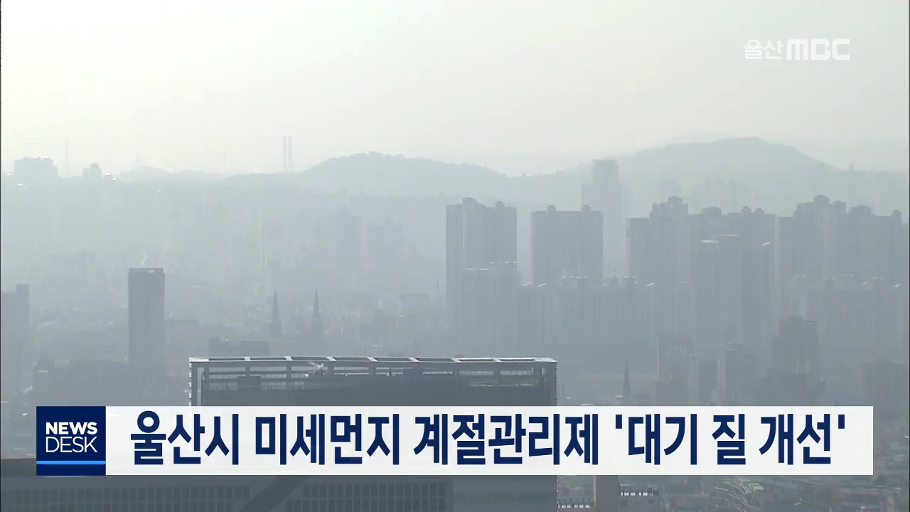 울산시가 '미세먼지 계절관리제'를 시행한 결과 대기 질이 대폭 개선된 것으로 나타났습니다. 미세먼지 계절관리제가 시행된 지난해 12월부터 올해 3월까지 초미세먼지 연평균 농도는 세제곱미터 당 19㎍로, 지난해 같은 기간 25㎍보다 24% 감소했습니다. 미세먼지 '나쁨' 일수는 24일에서 4일로 83% 줄어 특·광역시 중 최...