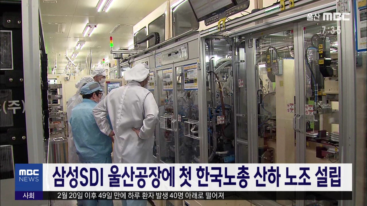 삼성SDI 울산공장에 한국노총 산하 노동조합이 처음으로 설립됐습니다. 지역 노동계에 따르면 삼성SDI 울산노조가 오늘(4/9) 울주군청에 노조 설립을 신고했고, 울주군청도 법적으로 전혀 문제가 없다고 판단해 곧바로 삼성SDI 노조 설립증을 발급했습니다.//