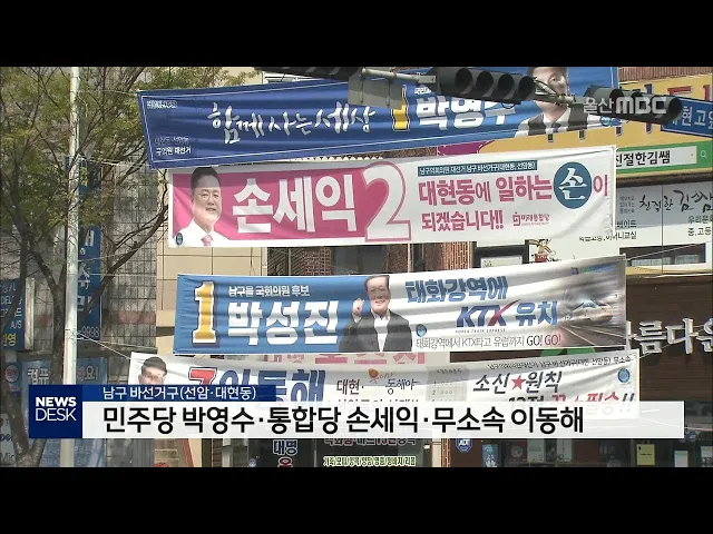 ◀ANC▶제 21대 총선 선거 운동 레이스도어느덧 반환점을 돌고 있는데요.무게감 있는 총선 후보들 사이에서재·보궐 선거에 출마한남구와 북구 기초의원 후보들도존재감을 알리기 위해 바쁘게 뛰고 있습니다. 이들의 유세현장을이용주 기자가 따라가 봤습니다. ◀END▶ ◀VCR▶박부경 전 남구의원의 선거법 위반으로공석...