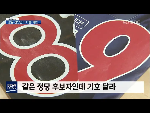 ◀ANC▶이번 선거에 나온 후보들의 기호를 유심히 보면 같은 정당인데 후보 간에 기호가 다르거나 다른 정당인데 기호가 같은 경우가 있습니다. 국회 의석 수가 적거나 아예 없는 군소 정당이 여기에 해당되는데 말 못 할 속앓이를 하고 있습니다. 유영재 기자 ◀END▶ ◀VCR▶울산 6개 선거구에 출마한 후보들 가운데 ...
