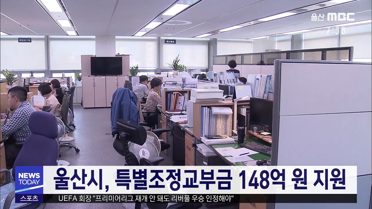 울산시는 각 구·군에 특별조정교부금 148억 원을 지원합니다. 이 예산은 중구 야구장 건립과 남구 선암근린공원 신선정 보수공사, 동구 대왕암 출렁다리 조성사업, 북구 청년 제조업 창업공간 조성, 울주군 언양 서부동 소방도로 개설 등 19개 사업에 쓰일 예정입니다. //