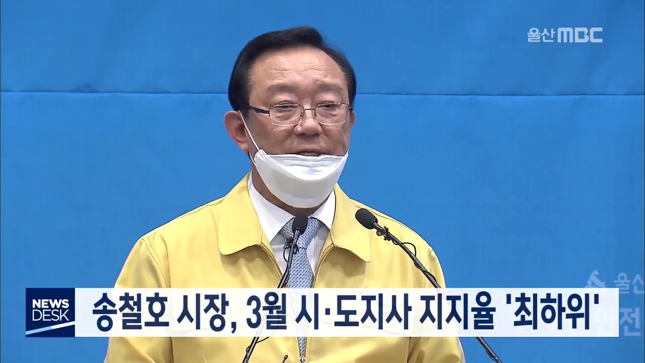 송철호 시장, 3월 시·도지사 지지율 '최하위'