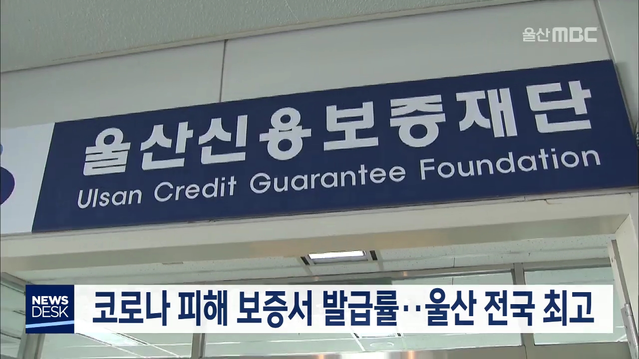 코로나19로 피해를 입은 소상공인을 위한 울산의 정부 특례보증 등 보증서 발급율이 73.4%로 전국에서 가장 높은 것으로 나타났습니다. 중앙재난안전대책본부는 전국 16개 지역신용보증재단이 38만여건의 보증신청을 접수받아 이 가운데 44.5%인 17만여건의 보증서를 발급했다고 밝혔습니다. 그런데 울산신용보증재단의 보...