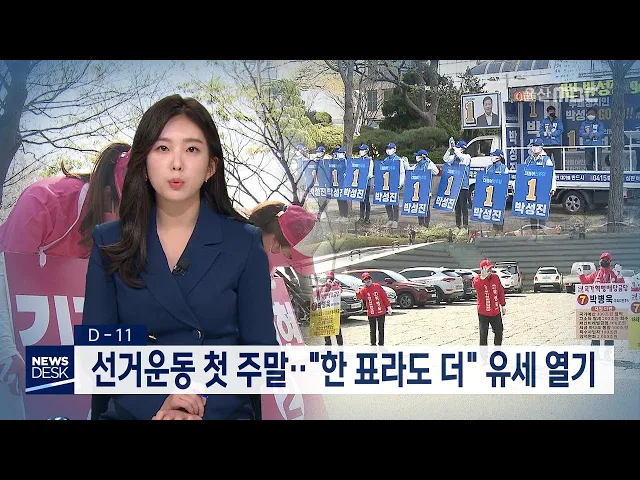 ◀ANC▶공식 선거운동이 시작된 후 첫 주말입니다.코로나19 유행으로 시민들의 바깥 출입이줄어들면서, 후보들은 유권자들이 모일 만한 곳을 일일이 찾아다니며 선거운동에 공을 들이고 있습니다.남구 을 선거구 후보들의 주말 유세 현장에유희정 기자가 다녀왔습니다. ◀END▶ ◀VCR▶신호가 바뀔 때마다 건너는 사람...