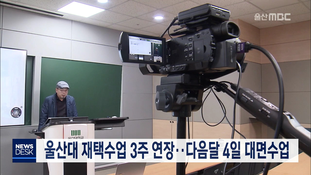 울산대학교가 코로나19 여파로 재택수업을 3주 더 연장하기로 했습니다. 울산대는 이에 따라 다음 달 1일까지 개설강좌에 대해서 재택수업을 진행한 뒤 다음 달 4일부터 대면 수업을 시작할 예정입니다. 앞서 유니스트는 이번 1학기에는 대면 수업을 하지 않고 온라인 강의만 진행하기로 결정했습니다. //